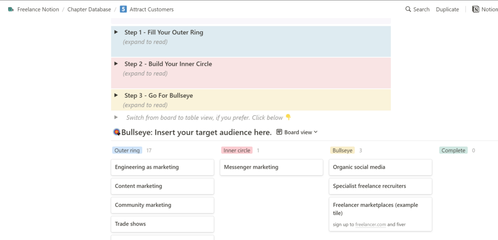 1. Freelancers who want to work through Freelance Notion like a book, reading every chapter in detail accessing resources as they go, completing tasks to achieve their goals;